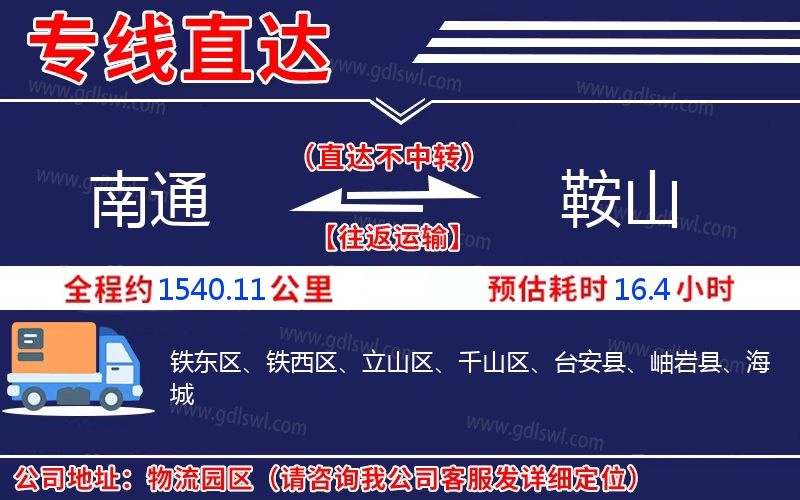 南通到鞍山物流專線是一條連接南通和鞍山的貨物運輸線路,由陸順物流公司提供直達不中轉(zhuǎn)運輸服務(wù),能為企業(yè)、工廠、貿(mào)易商以及個人提供高效、便捷、可靠的貨運解決方案