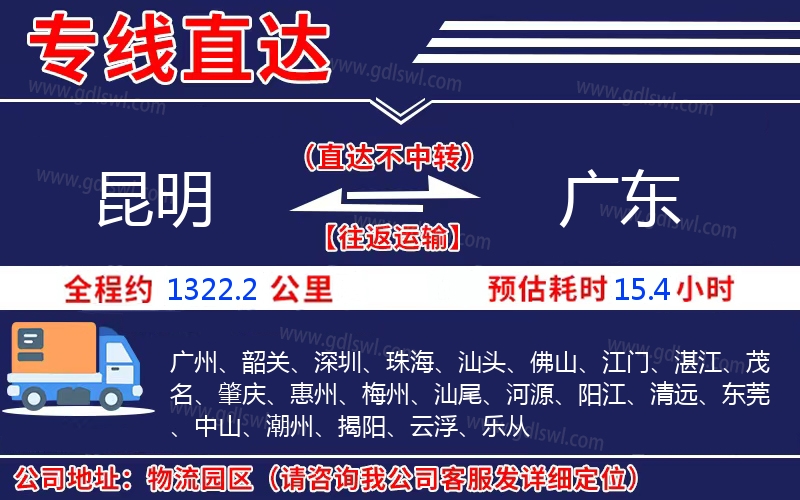 昆明到廣東物流專線是一條連接昆明和廣東的貨物運(yùn)輸線路,由陸順物流公司提供直達(dá)不中轉(zhuǎn)運(yùn)輸服務(wù),能為企業(yè)、工廠、貿(mào)易商以及個(gè)人提供高效、便捷、可靠的貨運(yùn)解決方案