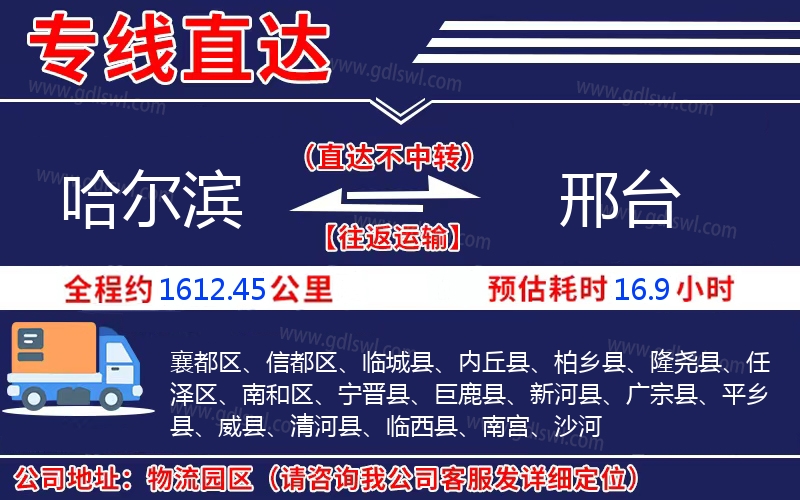 哈爾濱到邢臺物流專線是一條連接哈爾濱和邢臺的貨物運(yùn)輸線路,由陸順物流公司提供直達(dá)不中轉(zhuǎn)運(yùn)輸服務(wù),能為企業(yè)、工廠、貿(mào)易商以及個(gè)人提供高效、便捷、可靠的貨運(yùn)解決方案