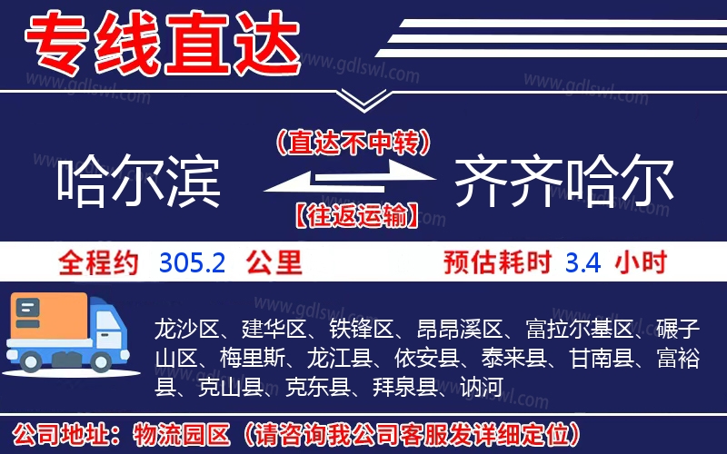 哈爾濱到齊齊哈爾物流專線是一條連接哈爾濱和齊齊哈爾的貨物運輸線路,由陸順物流公司提供直達不中轉運輸服務,能為企業(yè)、工廠、貿易商以及個人提供高效、便捷、可靠的貨運解決方案