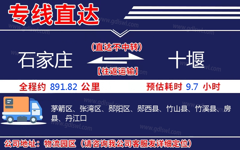 石家莊到十堰物流專線是一條連接石家莊和十堰的貨物運輸線路,由陸順物流公司提供直達不中轉(zhuǎn)運輸服務,能為企業(yè)、工廠、貿(mào)易商以及個人提供高效、便捷、可靠的貨運解決方案