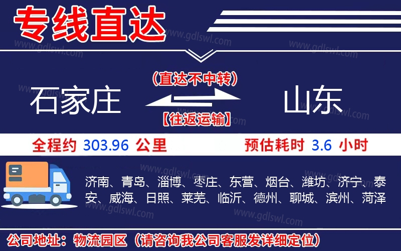 石家莊到山東物流專(zhuān)線(xiàn)是一條連接石家莊和山東的貨物運(yùn)輸線(xiàn)路,由陸順物流公司提供直達(dá)不中轉(zhuǎn)運(yùn)輸服務(wù),能為企業(yè)、工廠(chǎng)、貿(mào)易商以及個(gè)人提供高效、便捷、可靠的貨運(yùn)解決方案