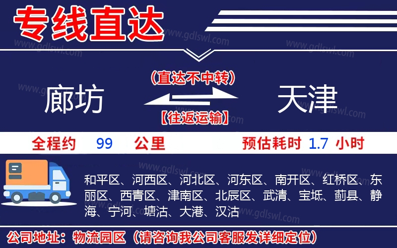 廊坊到天津物流專線是一條連接廊坊和天津的貨物運(yùn)輸線路,由陸順物流公司提供直達(dá)不中轉(zhuǎn)運(yùn)輸服務(wù),能為企業(yè)、工廠、貿(mào)易商以及個(gè)人提供高效、便捷、可靠的貨運(yùn)解決方案