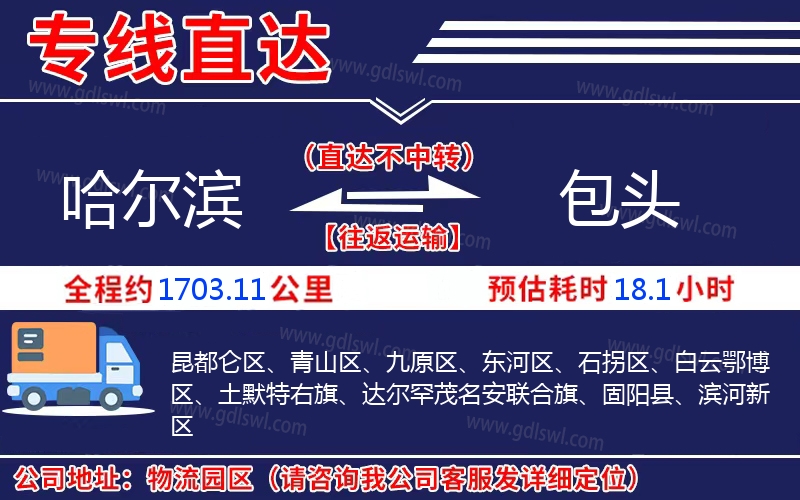哈爾濱到包頭物流專線是一條連接哈爾濱和包頭的貨物運輸線路,由陸順物流公司提供直達不中轉(zhuǎn)運輸服務(wù),能為企業(yè)、工廠、貿(mào)易商以及個人提供高效、便捷、可靠的貨運解決方案